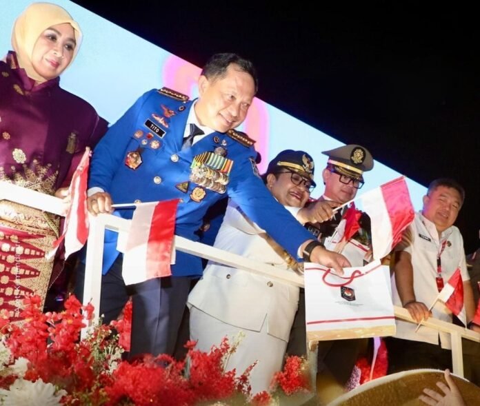 Jakarta – Suasana penuh haru dan kebanggaan menyelimuti Monumen Nasional (Monas), Jakarta, Minggu malam (17/8). Ribuan masyarakat dari berbagai penjuru tanah air berkumpul dalam acara Pesta Rakyat HUT ke-80 Kemerdekaan Republik Indonesia. Perayaan akbar ini dihadiri langsung oleh Presiden RI Prabowo Subianto, Menteri Dalam Negeri Tito Karnavian, serta Wakil Menteri Dalam Negeri Dr. Ribka Haluk bersama jajaran pejabat negara.